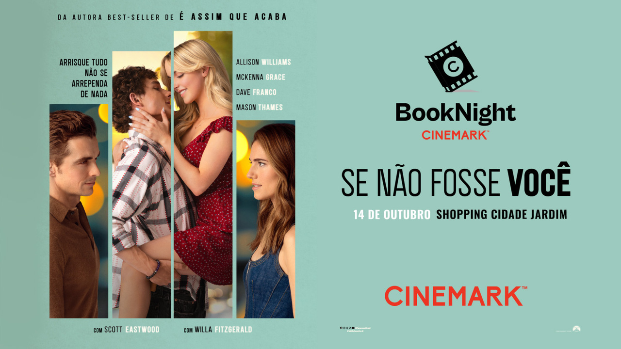 Os book lovers têm um novo encontro marcado com a Cinemark! No dia 14 de outubro, a Rede promoverá a Book Night, evento voltado para exibição de adaptações de obras literárias no cinema. Nesta edição, os fãs poderão conferir, em primeira mão, “Se Não Fosse Você”, filme baseado no best-seller de Colleen Hoover (“É Assim que Acaba”, “Verity”). A sessão acontecerá em São Paulo, na Cinemark Cidade Jardim, a partir das 19h. A pré-venda de ingressos já está disponível no site e app da Rede.